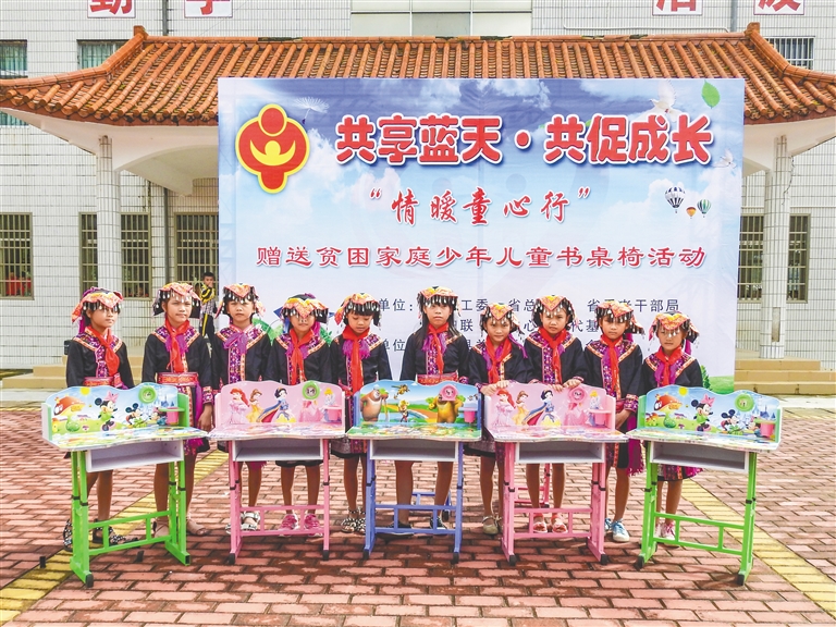 ●全省共向贫困家庭儿童捐赠3万套“爱心书桌椅”,捐赠1.37万册“爱心图书”