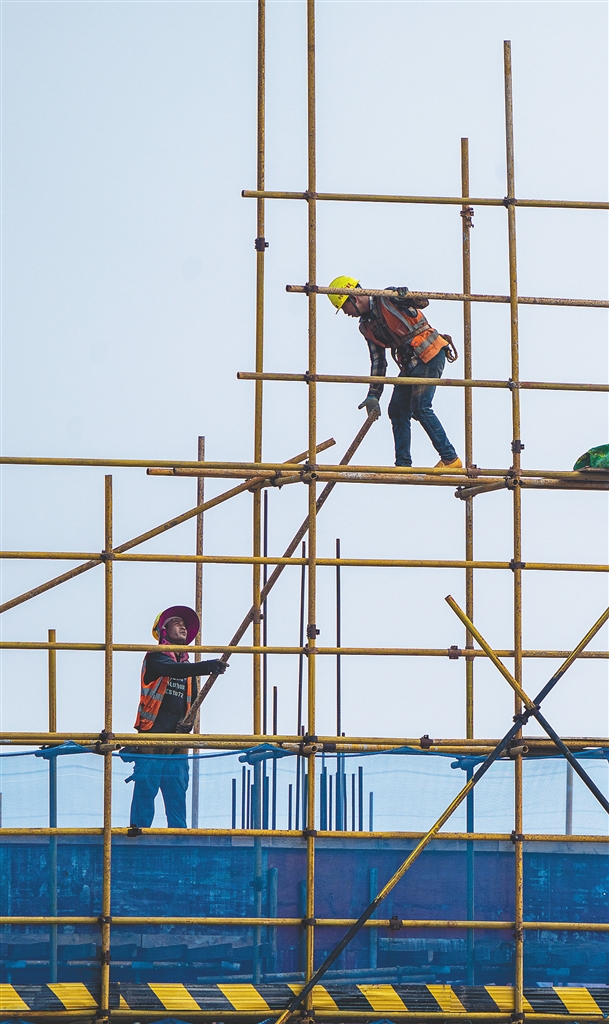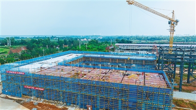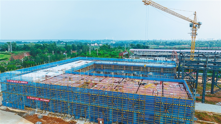 9月15日,在文昌国际航天城卫星总装测试厂房项目施工现场。 本组图片均由本报记者 袁琛 摄