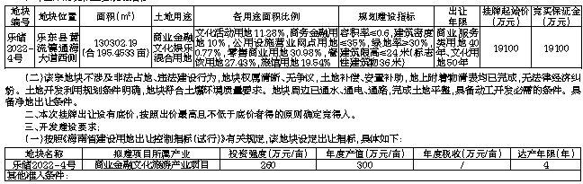 (一)竞买人资格:1.凡在中华人民共和国境内外的自然人、法人和其他组织(法律另有规定的除外)均可申请参加竞买,申请人须单独申请,不接受联合申请。属境外机构(含港、澳、台地区)申请参与竞买的,需按照规定提交商务主管部门核发的《外商投资企业批准证书》和工商主管部门核发的《营业执照》。2.申请人须具备竞买条件,并按规定交纳竞买保证金,我局将在规定的时间内确认其资格,签发资格确认书。3.对发现并核实竞买人存在下列情形之一的,不得申请参加挂牌出让活动:(1)在乐东黎族自治县行政区域内因自身原因造成土地闲置。(2)在乐东黎族自治县行政区域内存在通过恶意串通等非法手段竞得建设用地的、竞得土地后拒不签订成交确认书或出让合同的,或拒不支付土地出让金的。(3)被人民法院列入失信被执行名单和被税务系统列入重大税收违法案件联合惩戒名单的企业法人和个人。(4)非法占地、违法建设的。(5)未经批准擅自改变土地用途、容积率等规划条件的。竞买人须出具书面承诺不存在上述情形。(二)交易资料获取方式:本次挂牌出让的详细信息和具体要求,见挂牌出让手册及其他相关文件。手册和文件可从海南省建设用地使用权和矿业权网上交易系统(以下简称网上交易系统,网址:http://lr.hainan.gov.cn:9002)查看和打印。(三)竞买申请方式:本次交易活动竞买申请环节采取线上方式进行,有意向的竞买人可登录网上交易系统提交竞买申请,按要求上传竞买申请文件。不接受电话、邮寄、书面、口头等其他形式的申请。竞买申请时间:2022年9月30日10时00分至2022年10月31日17时00分(以网上交易系统服务器时间为准,下同)。(四)竞买保证金:竞买人在网上交易系统提交竞买申请时,应选定一家银行交纳竞买保证金,选定银行后系统自动生成唯一的随机竞买保证金账号,保证金交纳银行一经选定不能更改,竞买人应谨慎选择。竞买人须按照出让手册的有关规定将竞买保证金足额交入该账号(竞买保证金到账时间以银行信息系统入账时间为准)。本次竞买保证金的币种为人民币,不接受外币。竞买保证金应不属于银行贷款、股东借款、转贷和募集资金所得,并出具承诺。竞买保证金到账截止时间为:2022年10月31日17时00分。(五)资格确认:竞买资格审核开始后,出让人在2个工作日内、资格审核截止时间前完成竞买申请文件审核。竞买人提交竞买申请时应充分考虑网上交易活动的竞买资格审核时效,并进行审慎注意。竞买人的竞买申请文件审核通过,且竞买保证金已按要求交纳的,网上交易系统自动发放《竞买资格确认书》,确认其获得竞买资格。竞买资格审核时间:2022年10月9日9时00分至2022年10 月31日17时30分。