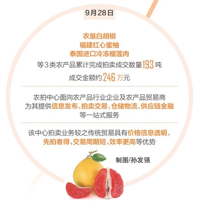 当天,3类农产品累计完成拍卖成交数量193吨,成交金额约246万元。试拍后,拍卖中心还将通过“线上拍卖交易、线下交付提货”的拍卖模式,提升农产品交易及流通效率。