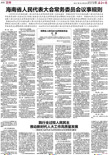 ~~~——《海南省人民代表大会常务委员会议事规则》解读