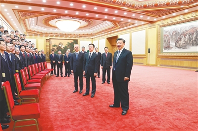 上午10时30分许,习近平等来到人民大会堂东大厅,全场响起热烈掌声。习近平同大家亲切交流并合影留念。习近平对大家表示,你们是国家栋梁、英雄功臣。在你们努力下,大飞机项目取得了可喜成就。要聚焦关键核心技术,继续合力攻关。要把安全可靠性放在第一位,消除一切安全隐患。大飞机事业一定要办好!