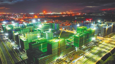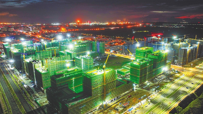 9月29日晚上,在洋浦经济开发区产城融合安居工程一期项目现场,灯火通明,施工现场热火朝天,项目有序推进。
