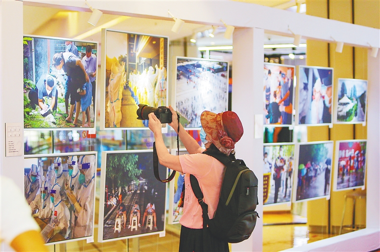 日前,在海口市友谊·阳光城,观众参观2022海南抗疫主题摄影作品公益展。该展由省摄影家协会与海南日报新媒体视觉中心特别策划,将持续到10月7日。见习记者 王程龙 摄
