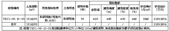 一、挂牌出让宗地基本情况和规划指标等要求:(一)挂牌出让宗地基本情况:本次挂牌出让宗地位于三亚崖州湾科技城控规YK01-08-10-03地块,面积13142.53平方米,用地四至及界址坐标详见地块勘测定界图。经核查《三亚市总体规划(空间类2015—2030)》(省政府同意入库版),该宗地用地规划性质为高新技术及信息产业园区。同时,经核查《三亚崖州湾科技城控制性详细规划》,该宗地用地规划性质为科研用地(用地代码:A35),对应土地用途亦为科研用地。2022年7月10日,三亚市人民政府出具了《关于三亚崖州湾科技城控规YK01-08-10-03地块内约13308平方米用地具备净地出让条件的证明》,证明控规YK01-08-10-03地块内约13308平方米用地土地征收工作已完成。三亚市崖州区人民政府已与被征地单位签订了《征收土地补偿协议书》,土地补偿款、安置补助费、青苗及地上附着物补偿费用等款项已支付到位,相关征地材料现存于市崖州区人民政府。目前地块上的附着物已清表、无法律经济纠纷、土地开发利用规划条件明确、符合土壤环境质量要求。地块周边可以满足施工建设所需的水、电供应,相关设备、机械可以进场施工。该宗地具备净地出让的条件。经我局核查,该宗地不属于非法占地、违法建设行为已经处置到位并组织供应的土地。该宗地概况及规划指标等情况详见下表: