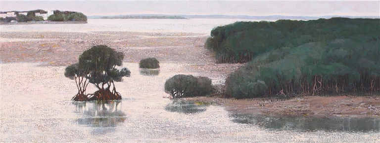 本次展览结合线上(省文联、省美术家协会、省南方美术研究院微信公众号网)展和作品集同步推出。六位画家的油画作品各具神韵,王锐画中风景自带诗意,恬然悠远;汪明强笔调奔放,画面色彩斑斓;李生琦温润祥和,他笔下的海口骑楼老街就是温暖人间;何永红大象无形,画布上推演“少即是多”的东方哲理;易武慎思笃行,笔画间彰显学院体系绘画的造型技法;林鸿平温文尔雅,明亮温和,画面保持了形式上的开放性;陈研妙笔生花,以女性独特视角颂咏海南。