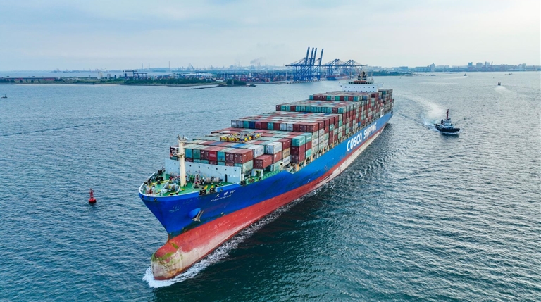 9月20日,“天秀河”号货轮装载着从新加坡港运抵的货物,在洋浦国际集装箱码头进行中转后,搭乘内外贸同船航线,从洋浦港启程,驶往广西钦州港。