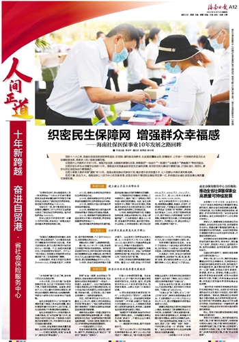 第012版:人间正道 十年新跨越 奋进自贸港·省社会保险服务中心