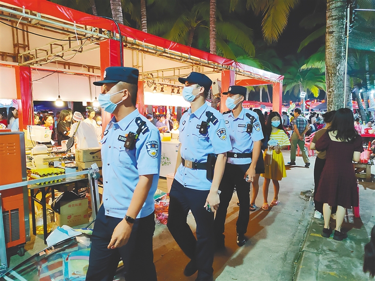 9月10日,中秋节当晚,文昌市高隆湾旅游区张灯结彩、人来人往,一片欢乐热闹的景象。街头闪烁的警灯、民警巡逻的身影,为祥和的节日气氛增添了一份平安底色。