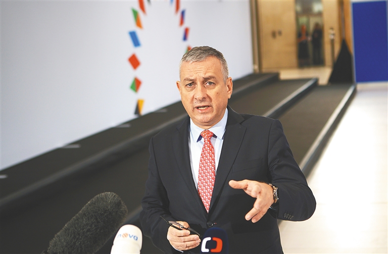 10月12日,欧盟轮值主席国捷克工业和贸易部长约瑟夫·西克拉在欧盟能源部长非正式会议前对记者讲话。