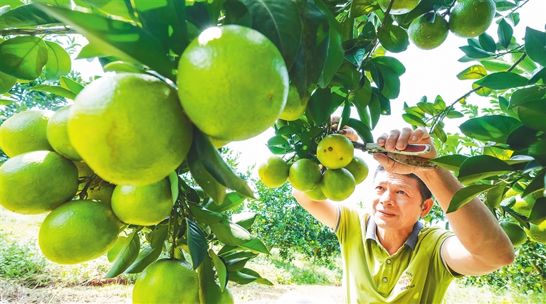 作为全国地理标志农产品,“澄迈福橙”是在当地富硒火山岩红壤条件和良好生态环境下生长的、经过精心培育的热带特色富硒果品,是带动当地群众增收致富的“金果子”。