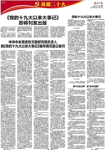 中共中央党史和文献研究院负责人 就《党的十九大以来大事记》编写情况答记者问