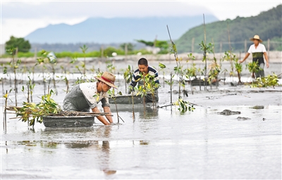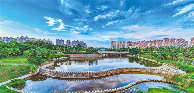 海南热带雨林国家公园内,千山更碧,猿声更响;文昌冯家湾沿岸,池塘退去,虾苗“上楼”;万宁小海周边,红树添绿,生态修复;海口美舍河,水清岸绿,景色怡人……