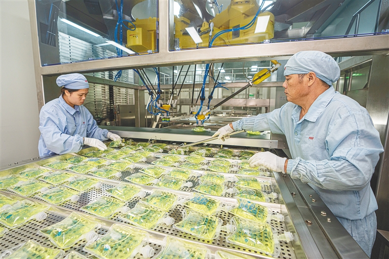 10月13日,在海口国家高新区的药谷工业园的海南爱科制药有限公司生产车间,工作人员在生产线上作业。该公司是一家集新药研发、生产与营销一体化发展的创新型制药企业,是海南省的“专精特新”企业。
