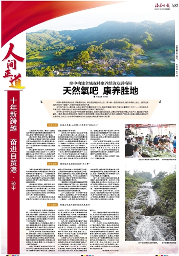 年平均气温23.4摄氏度,全县环境空气质量优良率100%,县域负氧离子每立方厘米含量高达1.8万个——良好的生态环境为这个海南中部山区城市布局森林康养产业增添了硬实的底气。