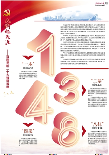 今年4月召开的省第八次党代会,提出了今后五年的总体要求,强调要全面落实“1348”战略框架,在全面建设社会主义现代化国家、实现第二个百年奋斗目标的新征程上书写海南精彩篇章。