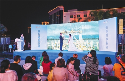 2020年开始,我省在三亚、海口琼山、东方、临高、琼中5市县(区)开展省级婚俗改革试点,琼海被列入全国婚俗改革实验区,推动新时代婚姻家庭工作转型升级。全省13家婚姻登记处设立婚姻家庭辅导室(或婚姻家庭纠纷调解室),提供家庭婚姻辅导服务6000余人次,组织家风家教宣讲28场,培育和睦幸福的婚姻家庭观念;在三亚市鹿回头风景区、海口市美舍河凤翔湿地公园设立婚姻登记机关,在琼海市建设万泉河爱情主题公园,将婚姻登记服务与特色婚俗文化、公园景区美景有机结合,组织集体婚礼和系列主题活动,倡导简约适度的婚俗礼仪。