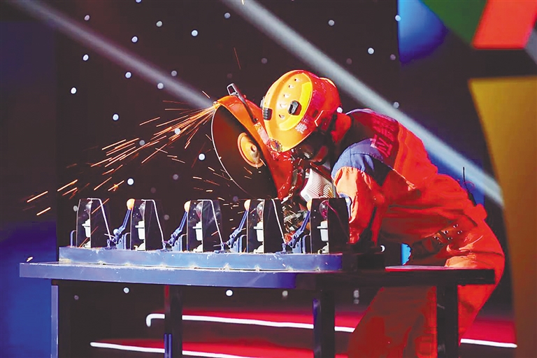 这是2021年12月15日晚,海南自贸港第一届职业技能大赛闭幕式暨颁奖晚会上的精彩镜头,参赛选手在观众的热烈掌声和喝彩声中尽展刀功。