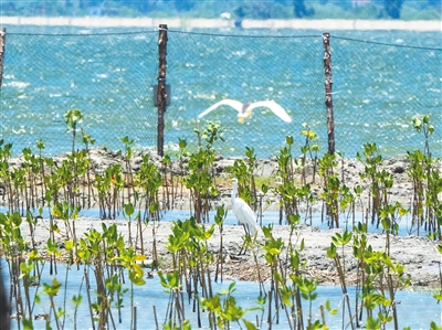 欣赏万宁小海的美景,感受小海生态环境的“重生”,如今人们很喜欢去的地方是万城镇周家庄。在43平方公里小海的退塘退排任务中,周家庄在全市第一个开拆鱼虾塘,周家庄小海沿岸700多亩鱼虾塘拆除的滩涂因此成为万宁市小海红树林种植的示范带,最先迎来一片绿意。周家庄成了万宁感受小海涅槃归来的打卡点。