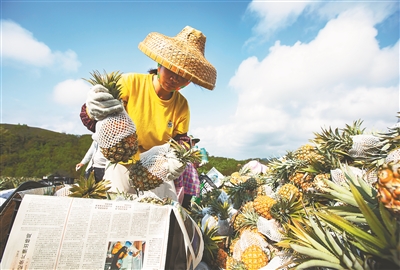 “种菠萝不再是面积大就一定收益高了,消费市场上更讲究口感和品质,全岛都种有菠萝,广东广西也种,种菠萝靠老品种是不行了,要引入新品种。”李会平说他自己也种了手撕菠萝、金钻凤梨等新品种。