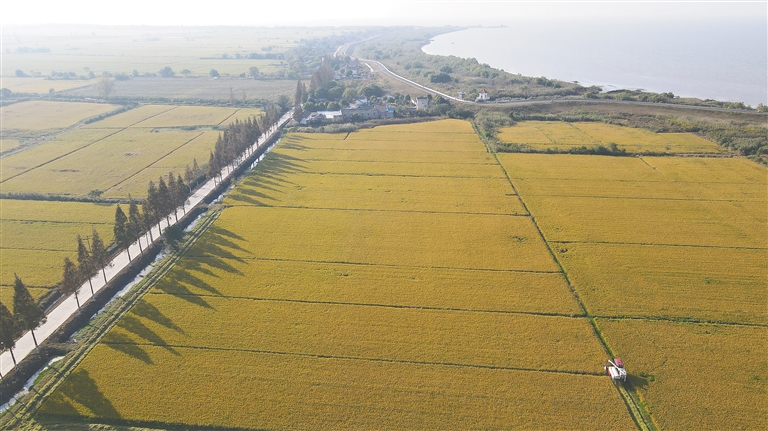 金秋时节,安徽省巢湖市槐林镇大片水稻田迎来丰收。近年来,巢湖市通过化肥减量增效、病虫害绿色防控、高标准农田建设等方式,推进巢湖流域水稻绿色种植工作。图为10月16日,在安徽省巢湖市槐林镇,农机手操作收割机在田间收割水稻。新华社记者 张端 摄
