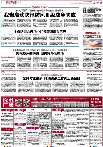 本报海口10月17日讯 (记者孙慧 习霁鸿)根据气象部门预报,今年第20号台风“纳沙”在10月19日可能登陆或擦过海南岛南部沿海地区。受“纳沙”和冷空气共同影响,我省将有暴雨天气过程。10月17日10时,省防汛防风防旱总指挥部启动防汛防风Ⅲ级应急响应。