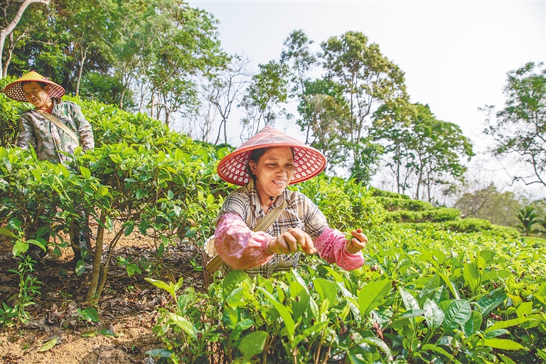 水满乡高海拔,纬度低,盛产海南大叶种茶,茶叶品质高。近年来,随着当地政府加大支持力度,茶产业已发展成为当地特色产业。其中,毛纳村茶农自种的茶园已达500多亩,茶叶也已成为村民增收致富的“金叶子”。