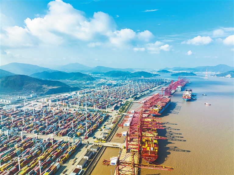 “疫情发生两年多来,宁波舟山港深入长江经济带,串起欧亚大陆桥,在构建新发展格局中展现新作为。”毛剑宏代表说。