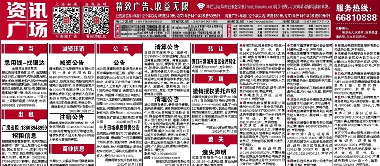 ●万宁大茂龙讯手机卖场(统一社会信用代码:92469006MA5RHCKJ9H)不慎遗失税务UKey盘一个,编码:667212864851,声明作废。