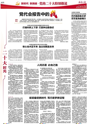 “全方位夯实粮食安全根基”“集聚力量进行原创性引领性科技攻关”等内容写进党的二十大报告。党的二十大代表、海南大学校长骆清铭表示,2021年7月,海南大学与原三亚南繁研究院合并,成立海南大学三亚南繁研究院,目前已有53名科研人员加入崖州湾种子实验室,成为国家战略科技力量。今年4月,习近平总书记来到崖州湾种子实验室考察调研时指出,“中国人的饭碗要牢牢端在自己手中,就必须把种子牢牢攥在自己手里” ,这进一步激发了南繁与热作领域科研工作者的热情。下一步,大家将认真学习贯彻党的二十大精神,牢记习近平总书记的殷切嘱托,紧密围绕国家需求,建设好崖州湾种子实验室,为国家南繁育种事业发展作出新的贡献。