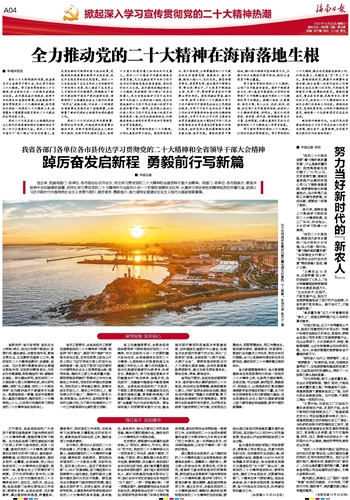 全力推动党的二十大精神在海南落地生根
