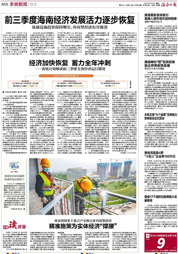 前三季度海南经济发展活力逐步恢复