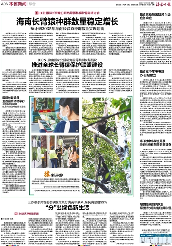~~~预计到2035年海南长臂猿种群数量实现翻番