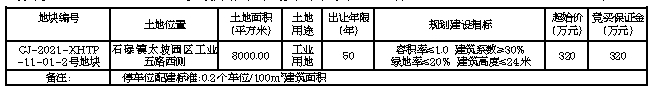 经昌江黎族自治县人民政府批准,昌江黎族自治县自然资源和规划局决定以挂牌方式出让一宗(幅)位于石碌镇太坡园区工业五路西侧,地块编号CJ-2021-XHTP-11-01-2号地块国有建设用地使用权。现将有关事项公告如下:一、挂牌出让地块的基本情况和规划指标要求: