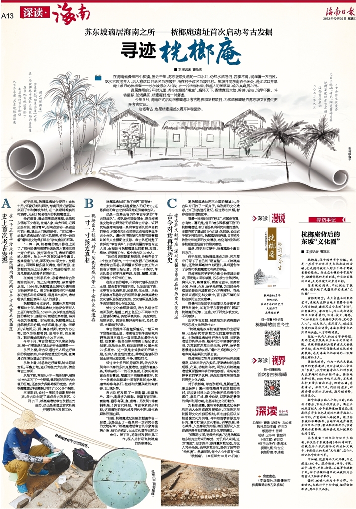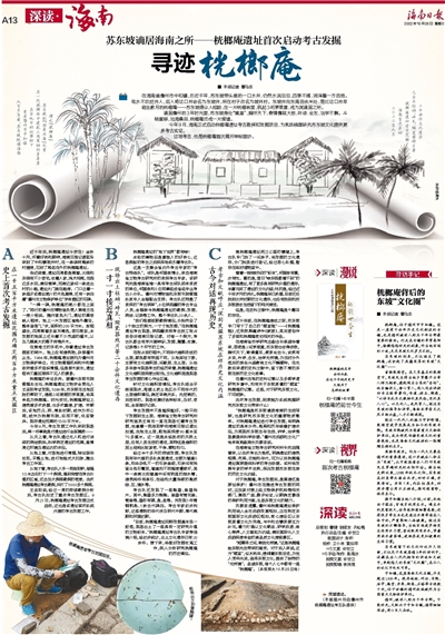 今年9月,海南正式启动桄榔庵遗址考古勘探和发掘项目,为系统梳理研究苏东坡文化提供更多考古实证。