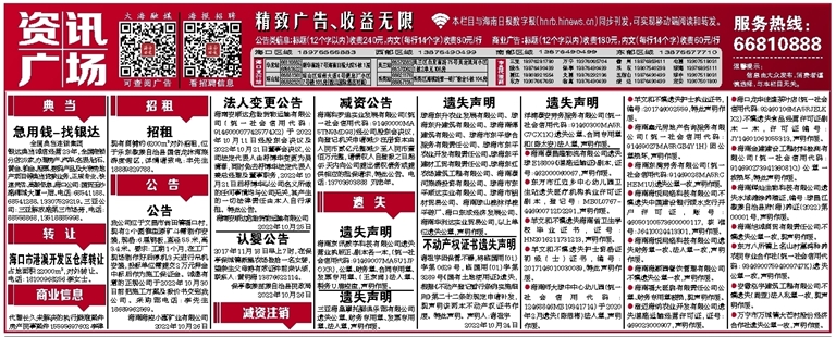 ●海南鑫元房地产咨询服务有限公司(统一社会信用代码:91469027MA5RGB4Y1H)因公章损坏,声明作废。