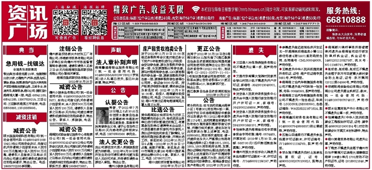 ●海南鑫沅财务咨询有限公司(统一社会信用代码:914600007543508837)因公章破损,声明作废。