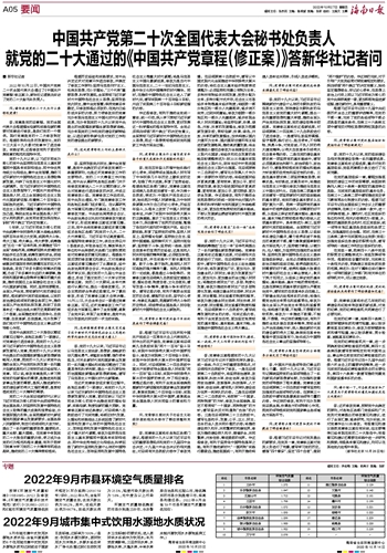 中国共产党第二十次全国代表大会秘书处负责人 就党的二十大通过的《中国共产党章程(修正案)》答新华社记者问