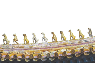 北京故宫无疑是世界上最宏伟的宫殿建筑群,而三大殿之首的太和殿又是紫禁城中最重要的建筑,明清帝王在这里举行朝贺大典,也就是老百姓俗称的“金銮殿”。在太和殿屋脊上,依序排列着10个小兽,这些脊兽在现实生活中很少见到,所以被称为“神兽”。它们究竟有什么用途和寓意呢?