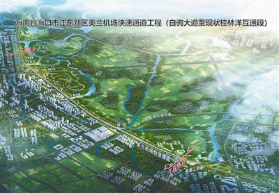 10月30日上午,美兰机场快速通道项目开工活动举行。该项目总投资21.2亿元,全线主要采用高架快速路形式,主路为双向六车道,设计速度为80公里/小时。这是项目效果图。