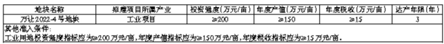 以上出让指标列入《海南省产业项目发展和用地准入协议》,属该协议内容的组成部分。竞得人须与万宁市科技和工业信息产业局签订《海南省产业项目发展和用地准入协议》,并严格按照《海南省产业项目发展和用地准入协议》约定内容进行开发建设,否则将承担相关违约责任。(二)其他开发建设要求:1.经查询全国污染地块土壤环境管理系统,该地块不在系统污染或疑似污染地块范围内。用地如涉及压覆重要矿产及位于地质灾害易发区,在该地块内进行项目建设依法需办理建设项目压覆矿产资源审批手续及地质灾害危险性评估的,应按规定办理相关手续。2.装配式建造方式应按照《海南省住房和城乡建设厅 海南省发展和改革委员会 海南省自然资源和规划厅 海南省市场监督管理局 海南省工业和信息化厅关于进一步稳步推进装配式建筑有关事项的通知》(琼建科函〔2021〕155号)等文件要求执行。
