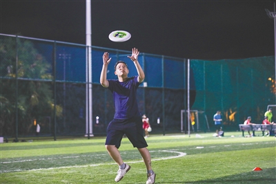 “简单易学,规则明了,第一次玩就迷上了。”扎哥说,亲身上阵,来上一场飞盘大战,他和伙伴们很快就对这项运动上了瘾。在玩的过程中,有冲刺奔跑的快感,飞盘投掷间运筹帷幄的洒脱感,还有团队奋战激发的默契感。