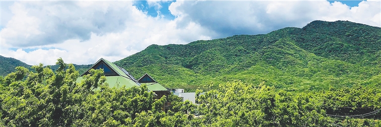 独自漫步在小道上,山林无限延伸,淡绿的色彩,宛然中国山水画上一道道雅致的墨痕。遇见一辆工程车,停在电线杆旁边,从车上下来几名工人,操着本地方言。一名年轻人爬上高高的灯杆,利用腰带,把自己稳稳地挂在杆上。他全神贯注地检查故障灯,轻轻地拧开灯罩,给路灯换灯泡。据介绍,花梨谷旅游度假区内的许多工人,如电工、养护工、保洁工等,都是从附近村庄招收,他们年收入四五万元。