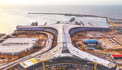 近日,海口新海客运枢纽项目和交通枢纽(GTC)项目停车楼、预留地铁站主体结构已经全部完成,项目进入最后冲刺阶段。目前,主体建筑部分正在进行金属屋面、玻璃幕墙和室内装饰装修施工。