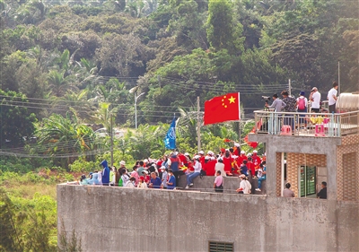 除了本地群众,在龙楼镇的沙滩、清澜大桥下的市民公园,还有从全国各地赶来观礼的人群,像过节一样热闹喜庆。