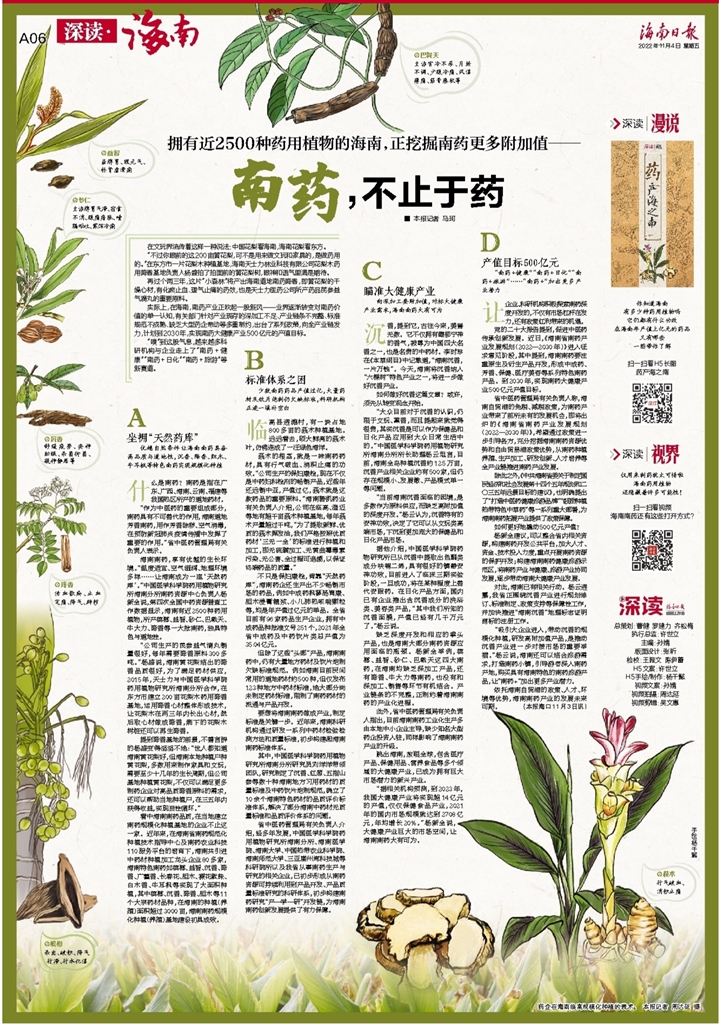 除此之外,《中共海南省委关于制定国民经济和社会发展第十四个五年规划和二〇三五年远景目标的建议》,也明确提出了“打造中医药健康旅游品牌”“鼓励种植热带特色中草药”等一系列重大部署,为海南南药拓展产业提供了政策保障。