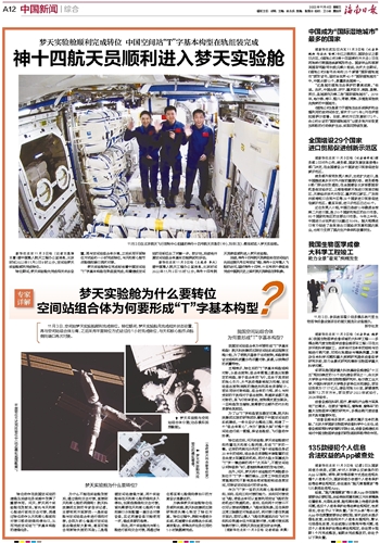 梦天实验舱为什么要转位 空间站组合体为何要形成“T”字基本构型?