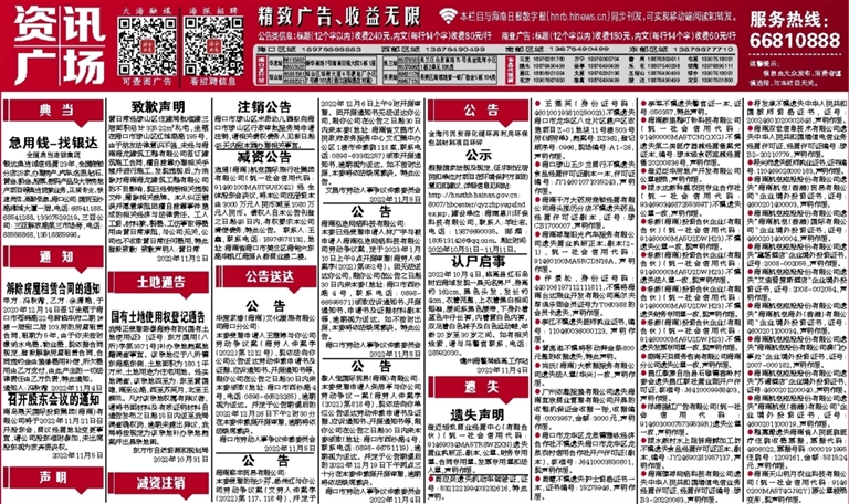 南岛晟天国际投资集团(海南)有限公司将于2022年11月21日召开股东会,商议经营地址变更事宜,请公司股东准时参加,未出席股东视为放弃表决权。