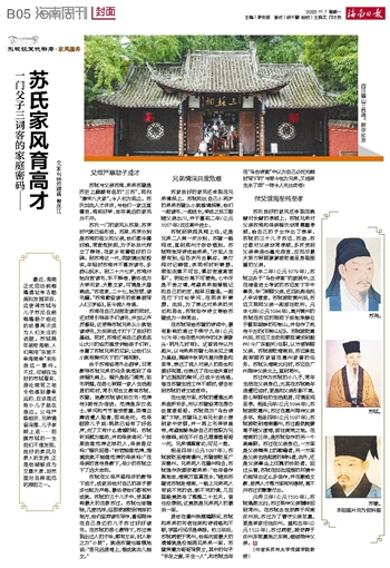 最近,海南正式启动桄榔庵遗址考古勘探和发掘项目,这使得苏轼与儿子苏过在桄榔庵朝夕相处的故事再次成为人们关注的话题。苏轼晚年被贬海南,人们常用“东坡不幸海南幸”来形容这一事件。不过,可能在当时的苏轼看来,身处南荒之地令他感到最幸运的,应该是还有小儿子陪在身边。父母严慈相济、兄弟情谊深厚、儿子孝顺上进……回顾苏轼的一生我们不难发现,良好的家风及家人的支持,正是他能够成为文章大家、坦然面对各种困厄的原因之一。