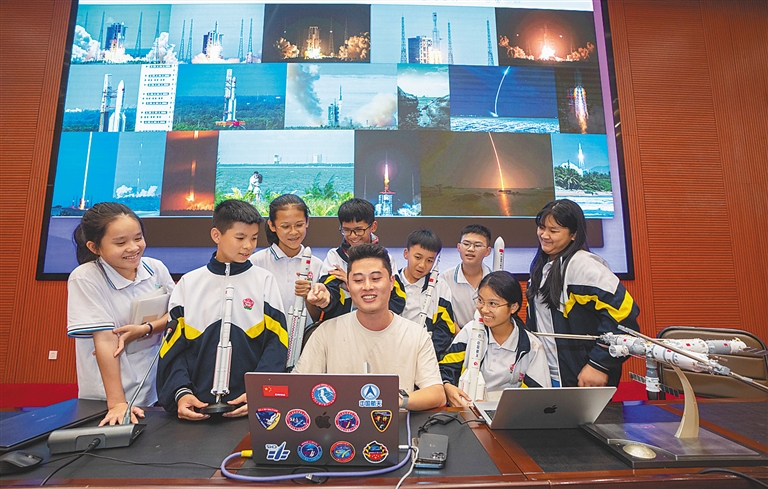 如今,王禹博一边准备着新的火箭拍摄工作,一边在海南各地中小学开展航天知识公益科普。